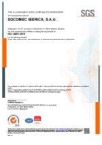 ISO 14001 SOCOMEC IBERICA, S.A.U.