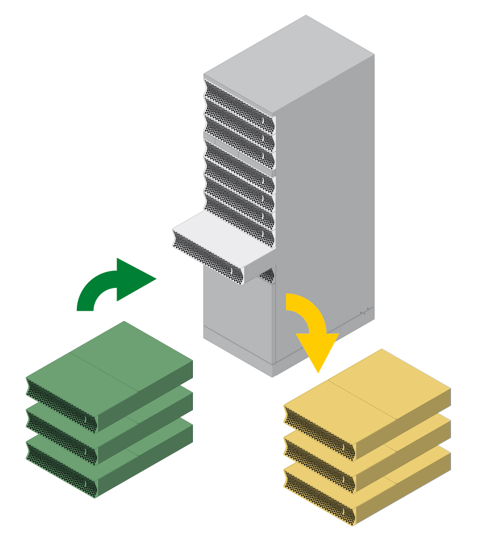 As arquiteturas de UPS modulares padrão melhoraram este cenário com a introdução de módulos de potência que dividem a carga e podem ser substituídos individualmente. No fim da vida útil do sistema, no entanto, a estrutura central — a armação, a lógica de controlo e os elementos de distribuição — ainda precisa de ser totalmente substituída. O processo continua a ser disruptivo e envolve a requalificação e o restabelecimento da ligação elétrica.